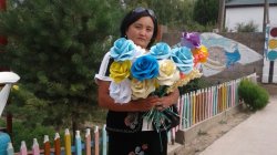 Таластык Калбүбү апа гүлдөрдү өстүрүп, мектепке, бала бакчага, кыздарына таратат