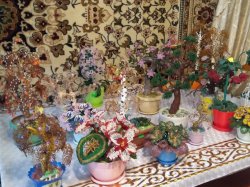 Таластык Н.Осмоналиева үлпөт тойлор үчүн мончоктордон өзгөчө гүлдестерлерди жасап сатат