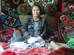 Орунбү апа Көчмөндөр оюндарына өзү жасаган шырдактарды алып барат