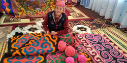 Таластык А.Осмоналиева кийизден паннолорду жасап, чет элдиктерге сатууда