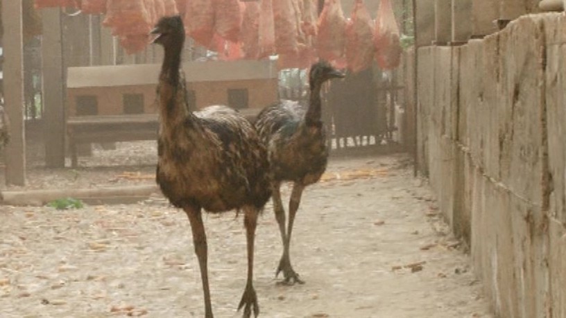 Таластык немис Н.Лущенко Казакстандан алынган төө куштарды багып жатат