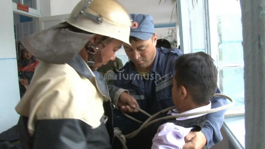 В школе им. М.Рахманбердиева села Уч-Коргон Манасского района прошло учение по предотвращению пожара (фото)