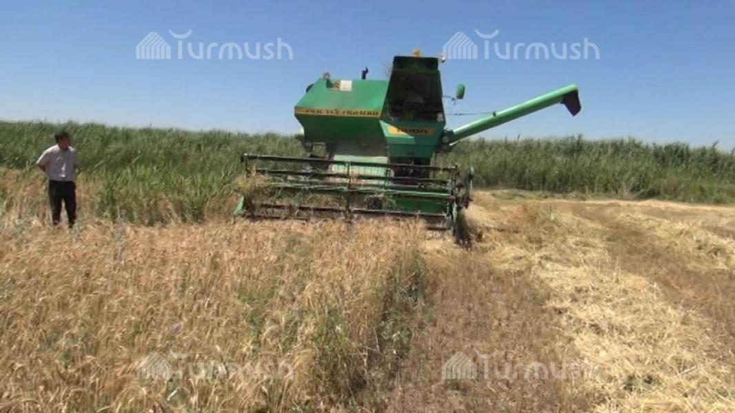 В Манасском районе проводятся работы по сбору зерновых (фото)