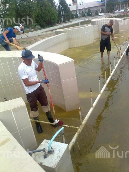 ОсОО «Победа» не завершило до конца строительство фонтана в городе Талас и сейчас он постоянно загрязняется, - коммунальное хозяйство (фото)