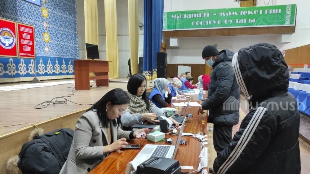 Жительница города Талас пришла на избирательный участок вместе с дочерью. Видео