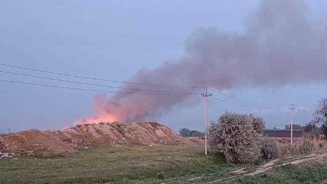 На трассе Талас—Тараз вспыхнул пожар