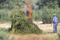 В селе Покровка Таласской области сожгли 2,5 тонны дикорастущей конопли